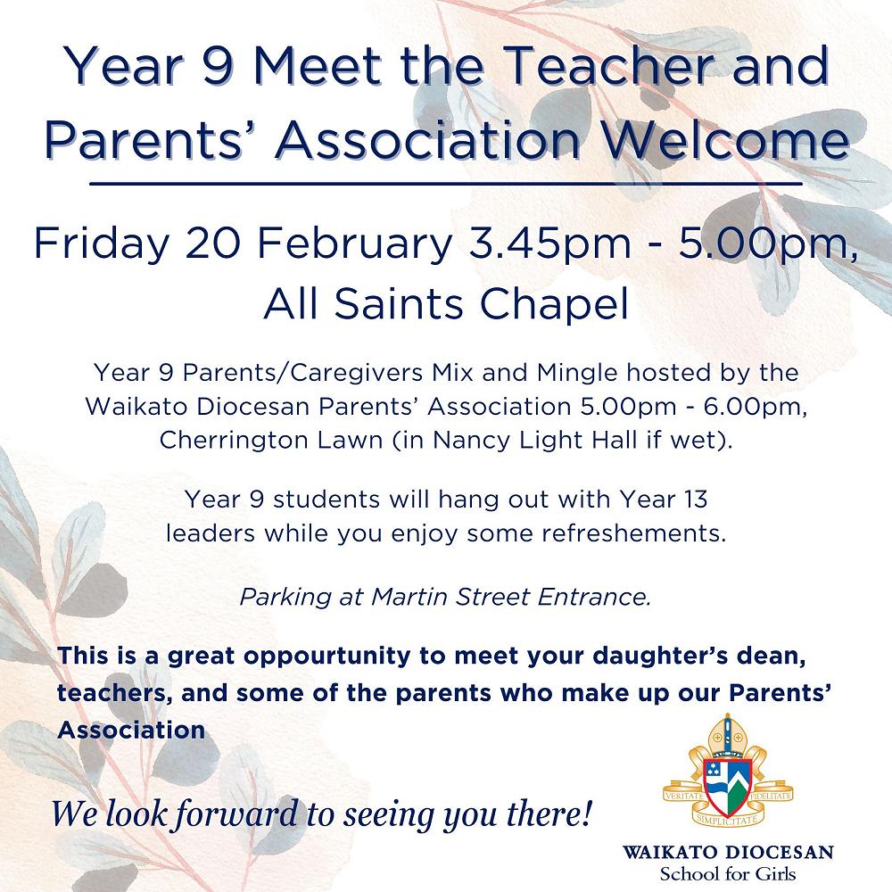 We warmly invite you to our Year 9 Parents Meet the Teachers Information Evening and Parents’ Association Mix and Mingle, which will be held on Friday, 20 February. Please see parent letter attached, including the link to RSVP to this event for catering purposes.